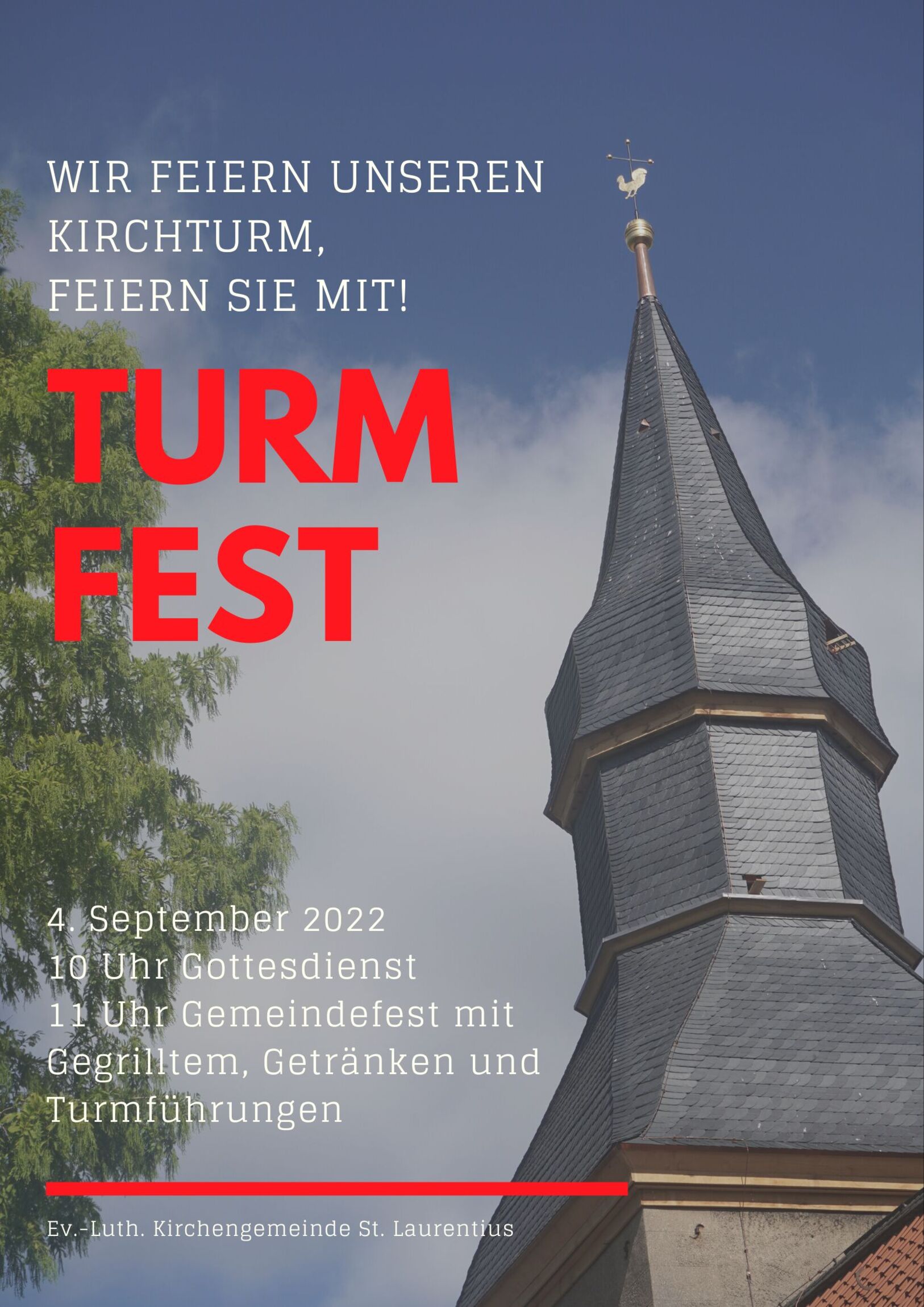 Am Sonntag, 4. September, feiern wir den Abschluss der Bauarbeiten am Kirchturm. Feiern Sie mit!
