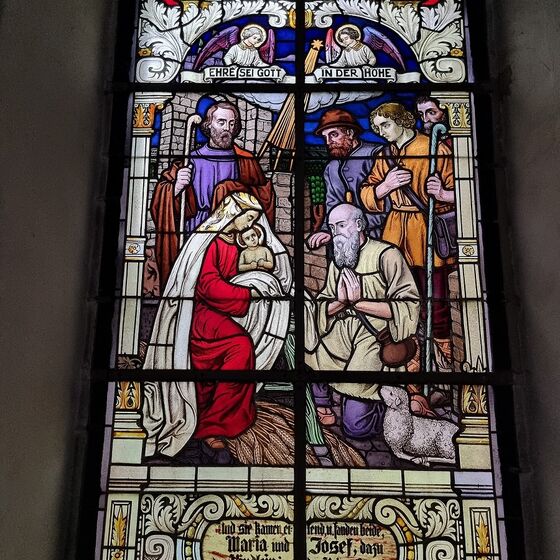 Den Altarraum ziert ein Fenster aus der Werkstatt des Glasmalers Hubert Hennig aus Hannover. Das Fenster zeigt die Geburt Christi und wurde 1920 von einer Fredener Klein Fredener Bauernfamilie gestiftet.
