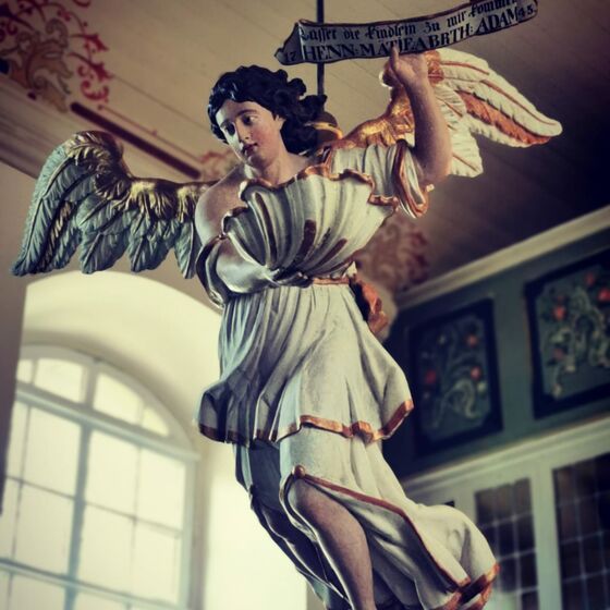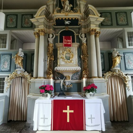 Die Hauptkirche Peter und Paul in Wetteborn überrragt mit ihrem auffälligen gelben Anstrich die Dächer des ländlich geprägten Dorfes und ist von weither sichtbar. In der Kirche wird einmal im Monat Gottesdienst gefeiert.